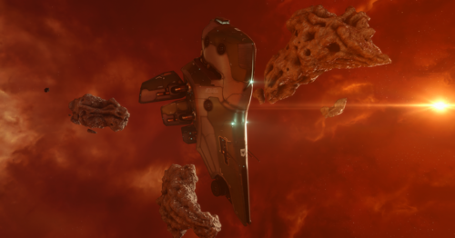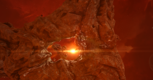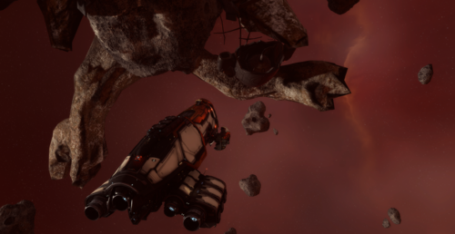 The entire site is a cluster of strange rock formations, with the massive wreck of a spaceship wrapped around one of them. Nafrid Sharum, a Level 2 Amarr COSMOS agent, and Aradin Ucham, a Level 3 Amarr COSMOS agent, oversee the site, piloting a Maulus and an Omen, respectively.