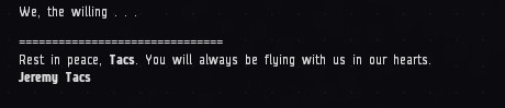 Visit Mandoo to remember capsuleer Jeremy Tacs, a real life player honored in game by CCP with an NPC agent named after him.