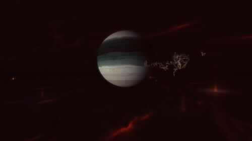 The system is enveloped in a deep fire scarred red sky, streaked with glowing atmospheric fractures and distant flares. It feels less like a moment of destruction and more like a place slowly cooling after an unseen catastrophe. The effect is oppressive, cinematic, and unlike most locations in The Forge.