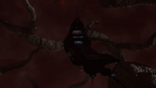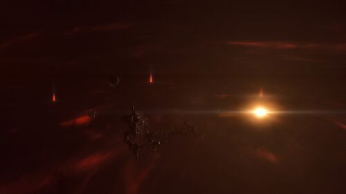 Red Rock Outpost is a forgotten industrial scar hidden in plain sight within The Forge. What remains is not the machinery itself, but the environment it inhabits: a rare, hostile red skybox that dominates the system’s visual character. The site feels suspended in a permanent aftermath, quiet, abandoned, and unresolved. While the structures are inert, the location offers significant atmospheric and historical interest.