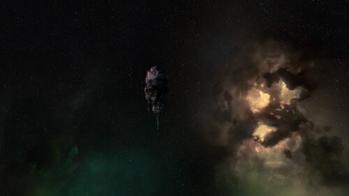 The Ebony Tower’s “rock” isn’t a conventional asteroid; it resembles a strange geological monolith suspended in space. Its form is elongated and tapering, almost like a stalactite or an inverted mountain peak, narrowing to a pointed spire at the bottom. The structure’s foreboding silhouette and its narrative importance in New Eden’s mission landscape have made it a notable landmark for explorers and lore seekers alike. Two Gallente COSMOS agents are present here.